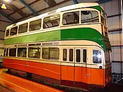 | Glasgow Corporation Tramways | 1245 | 1939 | 2002 | 64 | Orange, green and cream | Currently undergoing long-term restoration | Coronation Class Tram