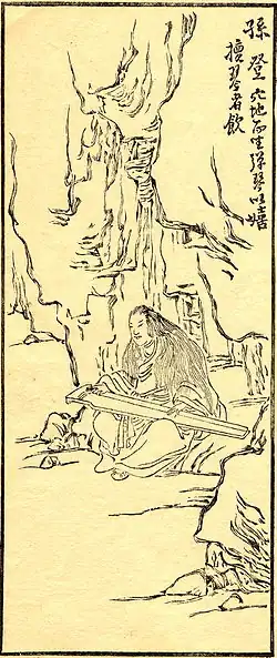 Sun Deng (孫登; fl.230–260 CE) was a Daoist sage-recluse, a zitherist, and allegedly the last master of transcendental whistling. Chinese literature has various anecdotes about Sun Deng refusing to teach the musicians Ji Kang (223–262) and Ruan Ji (210–263), two of the iconoclastic Seven Sages of the Bamboo Grove.