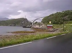 The Sundøy Bridge (Norwegian: Sundøybrua) is a cantilever bridge in Leirfjord Municipality in Nordland county, Norway. The concrete bridge connects the mainland to the village of Sundøya on the island of Alsta. The 538-metre (1,765 ft) bridge has three spans, with the main span being 298 metres (978 ft) long. The maximum clearance to the sea is 43.5 metres (143 ft).[2][3]