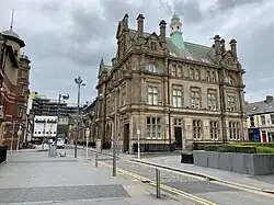 In 1886–90 Sunderland Town Hall was built in Fawcett Street, just to the east of the railway station, to a design by Brightwen Binyon.[28] By 1889 two million tons of coal per year was passing through Hudson Dock,[62] while to the south of Hendon Dock, the Wear Fuel Works distilled coal tar to produce pitch, oil and other products.[63]