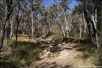 In the north of the park stringybark, yellow box, brown box and Tenterfield woollybutt are the most common trees.[1] Along the river red river gum, river oak, tea-tree and bottlebrush are typically found. Some areas of the park were cleared for grazing and the production of wool.[2]