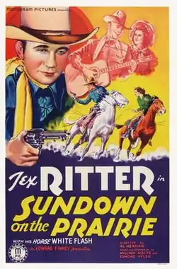 Sundown on the Prairie is a 1939 American Western film directed by Albert Herman and written by William L. Nolte and Edmond Kelso. The film stars Tex Ritter, Dorothy Fay, Horace Murphy, Karl Hackett, Charles King and Hank Worden. The film was released on February 8, 1939, by Monogram Pictures.[1][2][3]