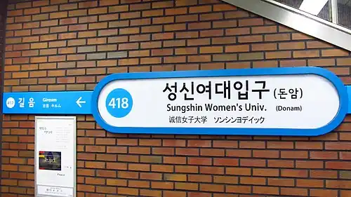 - ^ a b "성신여대입구역" (in Korean). Doopedia. Retrieved 2017-02-27.