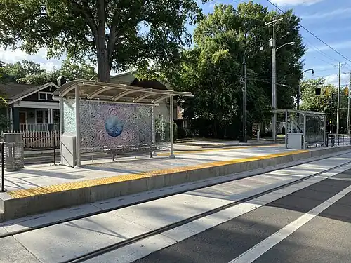 Sunnyside Avenue is a streetcar station in Charlotte, North Carolina. The at-grade island platform on Hawthorne Lane is the eastern terminus of the CityLynx Gold Line and serves the Elizabeth neighborhood.