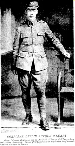 It was reported that Leslie Arthur O’Leary had also been killed in the war on September 20, 1916, in France aged 21. The Auckland Star wrote an article on rugby league players who had enlisted and noted that the “Sunnyside Club has only nine members left” and that “William O’Shaughnessy… had compiled a record of league players that he has personally met in the trenches. The list contains 120 names of players from various clubs. The list is a unique one and is treasured by the league secretary. The three secretaries from the club have enlisted and the executive have also gone”.[37] The club reported a credit balance of £12 from the previous season.[38]