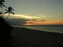 Sunset Beach is on the North Shore of Oahu in Hawaii and known for big wave surfing during the winter season. The original Hawaiian name for this place is Paumalū. It is a two-mile (3.3 km) stretch of mostly beige sand located at 59-104 Kamehameha Highway in Pupukea, 39 miles (63 km) driving distance from Waikiki. Lifeguards are usually present.[1]