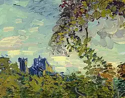 Sunset at Montmajour is a landscape in oils painted by the Dutch artist Vincent van Gogh on 4 July 1888.[1][2][3] It was painted while the artist was at Arles, France and depicts a landscape of garrigue with the ruins of Montmajour Abbey in the background.[1][4] The painting is 73.3 cm × 93.3 cm (28.9 in × 36.7 in). For over 100 years, it was in a Norwegian industrialist's private collection and wrongly assumed to be fake, before being re-examined, authenticated and sold to its current private owner. The painting was temporarily on display from 24 September 2013 until 12 January 2014 as part of an exhibition at the Van Gogh Museum in Amsterdam.[4]