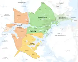 The municipality of Suoniemi bordered Nokia, Tottijärvi, Karkku, Mouhijärvi and Hämeenkyrö.