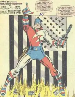 - ^ Friedrich, Gary (w), Trimpe, Herb (p), Grainger, Sam (i). "New! New! New! The Super-Patriot!" Nick Fury, Agent of S.H.I.E.L.D., no. 13 (July, 1969). Marvel Comics.