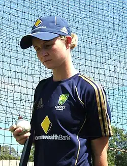 In 2008, Australians Leah Poulton and Alex Blackwell were invited to compete in the competition, the first time any non-English players had taken part in the tournament. The move was made both to improve the quality of the competition, and to strengthen ties with Cricket Australia, in order that more English players might be able to compete there during the English winter.[24] Poulton finished the competition as the leading run-scorer, appearing for the Sapphires,[25] who won the 50-over competition, winning three of their four completed matches.[26] The Twenty20 competition was won by the Rubies, for whom Blackwell played.[25]