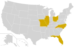 | Alabama Arkansas California Colorado Iowa Maine Massachusetts Minnesota North Carolina Oklahoma Tennessee Texas Utah Vermont Virginia |