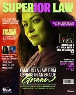 In August 2019, Marvel Studios announced that She-Hulk: Attorney at Law was being developed for the streaming service Disney+.[2][3] That November, Jessica Gao was hired to serve as the head writer.[4] In September 2020, Kat Coiro was hired to direct six episodes, including the second, and to executive produce the series.[5][6] Executive producers include Marvel Studios' Kevin Feige, Louis D'Esposito, Victoria Alonso, and Brad Winderbaum, in addition to Coiro and Gao.[3] The second episode, titled "Superhuman Law",[7] was written by Gao,[8] and was released on Disney+ on August 25, 2022.[9] The series' subtitle was added during the editing process when Feige heard Hulk's line from the episode, "She-Hulk attorney at law, it's got a nice ring to it", and felt it would be a good title for the series.[10] The episode's title card is altered to say She-Hulk: Attorney for Hire.[11]