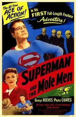 Superman and the Mole Men is a 1951 American superhero film released by Lippert Pictures. Produced by Barney A. Sarecky and directed by Lee Sholem, it stars George Reeves as Superman and Phyllis Coates as Lois Lane. It is the first feature film based on any DC Comics character,[1] and the first time George Reeves played the role of Superman, as he would later in the television series Adventures of Superman.[2]