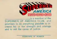 The original Supermen of America was an official Superman fan club from the 1940s. Comic readers could send away for and receive special membership cards that also doubled as decoders. Members also received buttons and special certificates.