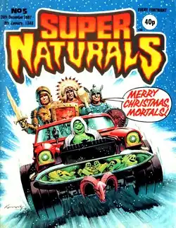 In line with a pattern used in many British children's comics of the period, the comic had a fictional editor, the Ghostling Spooks. The lead strip was "The Legend of the Supernaturals" and the lighter "Ghostlings!". Also included were non-Supernaturals strips, including ventriloquist dummy story "The Doll" (written by Peter Milligan) and self-contained 'creepy' stories reportedly chosen by another Ghostling, Scary Cat. Profile material and toy adverts also featured heavily in the comic.[14]