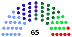 Political groups | Government coalition (33) Liberal Democratic Party (19) National Revival Democratic Party (14) Opposition (32) People's Democratic Party (16) Ecological Party (10) Justice Social Democratic Party (6) |