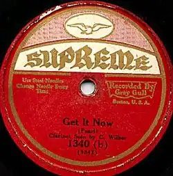 Supreme Records was a record label subsidiary of Grey Gull Records of Boston, Massachusetts, from 1926 to 1929. A different Supreme Records label was started in 1947 by Al Patrick to issue race records. Its catalog included Jimmy Witherspoon, Fletcher Henderson, Jay McShann, and Buddy Tate. After a lawsuit against Decca, this label closed in 1950.[1]