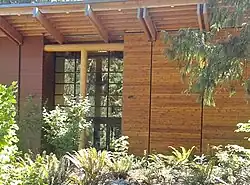 The Suquamish Museum opened in 1983 as the Suquamish Museum and Cultural Center, then only the second tribal museum in the state of Washington.[1][2] In 2009 the Suquamish tribe launched a capital campaign to construct a new facility, enlisting Senator Patty Murray and former Washington Secretary of State Ralph Munro to help lead the effort. The new facility opened in 2012 and is triple the size of the original building. Constructed at a cost of $6 million, the 9,000-square-foot (840 m2) purpose-built structure is set in a small botanical garden on the Port Madison Indian Reservation and consists of two galleries, a gift shop, a 50-seat auditorium, and a climate-controlled storage room used to house artifacts not on display.[3] The facility was designed by the Seattle architectural firm Mithun and is a LEED Gold certified building. In 2013 it received a citation from the Washington Council of the American Institute of Architects.[4]