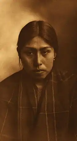 Early-20th-century ethnographer Edward Curtis associated the S'Homamish (sx̌ʷəbabš)[20] with the Suquamish as well.[16] However, other sources identify the S'Homamish with the Puyallup.[21][22][8] Specifically, anthropologist Marian W. Smith noted that the S'Homamish were closely affilated with the Puyallup. According to their oral history, their original village at Gig Harbor (txʷaalqəɬ)[20] was founded by an offshoot group of the Puyallup.[22]