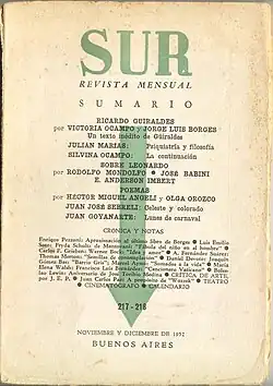 - ^ a b John King (1981). "Towards a Reading of the Argentine Literary Magazine Sur". Latin American Research Review. 16 (2): 57–78. JSTOR 2503125.