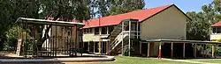 All Saints Anglican Church was built from timber by contractor Mr Williams and opened on Sunday 23 February 1879.[11][12][13] It was replaced in 1938 by another timber church, St John the Divine Anglican Church, which was opened by Archbishop William Wand on Sunday 24 April 1938.[14] St John's was designed by architect Lange Powell. It was closed in 2019. Both Anglican churches were at 27 Cordelia Street (27°09′16″S 149°04′04″E / 27.154498°S 149.0677°E).[15][16]