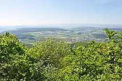 The heartland of the possessions of the medieval House of Regensberg was in the Furt and Wehn valleys besides the Lägern chain, where around 1050 AD the family built its ancestral seat Altburg near Zürich-Affoltern, and two centuries later Neu-Regensberg on the eastern Lägern slope.[4][5][6] In the 13th century the upper Surbtal (Lengnau) was controlled by the Counts of Regensberg, the lower valley by the families von Tegerfelden and later von Klingen. In 1269 Walther von Klingen sold his rights along with the town of Klingnau to the Bishop of Constance. The Regensberg family was ousted by the Habsburg family and the city of Zürich in the second half of the 13th century. In 1415 the valley came, as part of the Grafschaft Baden (bailiwicks of Siggen and Ehrendingen), to the Old Swiss Confederancy. In 1528, during the Reformation in Zürich, Niederweningen remained Roman Catholic; in Endingen, Tegerfelden and Unterendingen still lived Reformed minorities. In 1803 the Surbtal came as part of the county of Baden to the present Canton of Aargau.[2]
