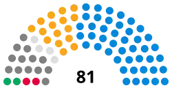 Since the last boundary changes in 2013 the county has been divided into 81 electoral divisions, each of which elects one councillor. Elections are held every four years.[28]
