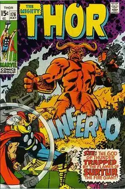 ![]() Surtur as depicted in Thor #176 (May 1970). Art by Jack Kirby. | |