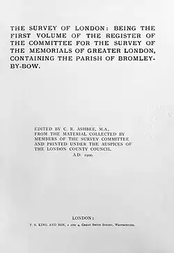 - ^ "Members of the Survey Committee Pages 4-7 Survey of London Monograph 12". British History Online. Guild & School of Handicraft, London, 1926. Retrieved 30 December 2022.