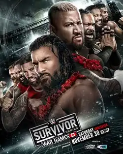 From 2021 until 2023, Roman Reigns and his cousins The Usos (Jey Uso and Jimmy Uso) led The Bloodline stable, managed by Paul Heyman, holding both the Undisputed WWE Universal Championship and Undisputed WWE Tag Team Championships, respectively, until their losses at WrestleMania 39 and XL, respectively. Also during this time, Sami Zayn joined as an honorary member until January 2023, with The Usos's younger brother Solo Sikoa also joining. After an internal strife, The Usos left the group and emerged victorious during the Bloodline Civil War tag team match at the 2023 Money in the Bank;[16] however, The Usos split up, with Jey moving to Raw and Jimmy remaining on SmackDown and rejoined The Bloodline, but despite being on different brands, this led to a match at WrestleMania XL where Jey defeated Jimmy.[17] Reigns also lost the Undisputed WWE Universal Championship to Cody Rhodes at the event.[18] In the months after Reigns' defeat, Sikoa assumed leadership of The Bloodline while forcibly exiling Jimmy and Heyman, and excommunicating Reigns, subsequently adding Tama Tonga, Tonga Loa, and Jacob Fatu. Reigns returned at SummerSlam, beginning a rivalry with Sikoa, while Jimmy returned at Bad Blood, which led to a reunion of Reigns and The Usos. At Crown Jewel, Reigns and The Usos lost to Sikoa, Fatu, and Tama after interference from Loa, with Sikoa pinning Reigns. Following the match, Sikoa's Bloodline outnumbered Reigns and The Usos until Raw's Zayn came out to save them, however, Zayn accidentally performed a Helluva Kick on Reigns intended for Sikoa.[19] On the following Raw, Zayn was confronted by The Usos, with Jimmy claiming Zayn attacked Reigns on purpose. Jey then urged Zayn to appear on that week's SmackDown to make amends with Reigns.[20] On SmackDown, Zayn told Reigns that the kick was an accident and stated it felt good to team with Reigns and The Usos again, however, he would only reunite with them against Sikoa's Bloodline if Reigns apologized to Jey for his past mistreatment of him, but Reigns refused. Later that night, Reigns confronted Sikoa and his Bloodline with Sikoa challenging Reigns and a team of his choosing to a WarGames match at Survivor Series: WarGames. Sikoa then introduced Zayn as the fifth member of his team, however, Zayn attacked Sikoa with Reigns acknowledging Zayn, officially reuniting the original iteration of The Bloodline (Reigns, The Usos, and Zayn). It was then announced that they would face the new Bloodline in a WarGames match at the event with a fifth member of each team to be determined.[21] On the November 15 episode of SmackDown, Sikoa's Bloodline recruited Bronson Reed from Raw,[22][23] while the following week, Heyman returned and revealed his old client, CM Punk from Raw, as the original Bloodline's fifth member.[24] On the November 29 episode of SmackDown, Punk explained that he joined Reigns's team to get revenge for what Sikoa's Bloodline did to Heyman and that Heyman owed him a favor for agreeing to the match. Later that night, Fatu defeated Jey to earn the WarGames advantage.[25]