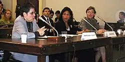 As the 2011 Libyan Civil War progressed, the United States and its allies offered a choice for Colonel Muammar Gaddafi and his aides: step down from power or face an international response. Rice offered some of the toughest rhetoric toward Gaddafi, criticizing his denials of atrocities against his own citizens as "frankly, delusional."[56] In a closed-door Security Council meeting in April 2011, Rice reportedly stated that Gaddafi loyalists engaged in atrocities, including terrorizing the population with sexual violence, and that Gaddafi's troops has been issued Viagra.[57] Investigations by Amnesty International, Human Rights Watch and Doctors Without Borders contradicted Rice and stated they did not find first-hand evidence that mass rapes had occurred as Rice had claimed.[58][59][60] Together with National Security Council figure Samantha Power, who already supported the U.S.-led military intervention in Libya, and Secretary of State Hillary Clinton, who came to support it, the three overcame internal opposition from Defense Secretary Robert Gates, security adviser Thomas E. Donilon, and counterterrorism adviser John Brennan, to have the administration advance a UN proposal to impose a no-fly zone over Libya and authorize other military actions as necessary.[19][61]