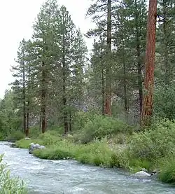 The Susan River (Northeast Maidu: Pam Sewim, bush creek)[3] is a northeastern California river of approximately 67 miles (108 km) length[4] that drains from an arid plateau of volcanic highlands along the Great Basin Divide to intermittent Honey Lake. The river flows from eastern Lassen County from east of Lassen Volcanic National Park generally east past Susanville and emerging into a ranching valley to enter the north end of Honey Lake. Along with Fredonyer Pass, the Susan River is the northern boundary of the Sierra Nevada.[5]