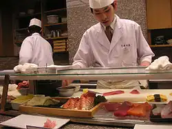 - ^ (in Japanese) Osushiyasan no arukikata お寿司屋さんの歩き方 Archived 2012-02-29 at the Wayback Machine, Retrieved February 2012.