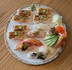 - ^ Frisch, Eleanor. "Japanese and Western Types of Sushi". Food Service Warehouse. Archived from the original on November 15, 2013. Retrieved December 11, 2013.