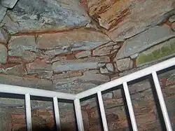 The Susoezoana Kofun is located on a hill on Notojima, an island within Nanao Bay, at an elevation of approximately 80 meters above sea level. The tumulus is approximately 25 meters square and 4.5 meters tall and is aligned north-to-south. It is unusual in that it contains two lateral hole burial chambers. One chamber is "T-shape" and the other is an inverted "L-shape" and open facing the ocean. Both have a length of roughly seven meters and are made from andesite slabs quarried on Noto island, although the "L-shape" chamber has partially collapsed. The construction method utilizes these stone slabs as bricks, and the ceiling has a corbel arch construction. This is an extremely rare example of a Goguryeo-style tumulus normally found in the northern Korean Peninsula. Both burial chambers have been open since antiquity, and their contents is unknown, but the tumulus of believed to date from the middle of the 7th century, after kofun ceased to be built in other locations of Japan. No other burial mounds have been found in the vicinity of this tumulus. [2]