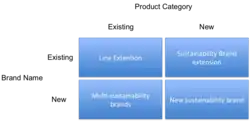 - Sustainability brand extension occurs when a company introduces products of a different product category but under the same sustainability brand name.