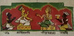 ![]() Jayadhwaj Singha (right) along his spiritual preceptor Banamalidev (left). Painting from Banamali Devar Charit c. 17th century. | |||||