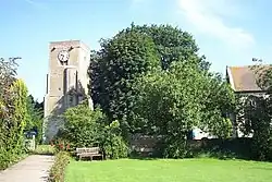 The parish church is dedicated to Saint James, and is unusual in that the chancel and tower are disconnected, the nave having been destroyed during the Interregnum, when Oliver Cromwell was Lord Protector of England.[3] The tower is Grade II* listed and dates from the 15th century, with restorations in 1879 and 1894.[4] The chancel is Grade II listed and dates from the 15th century – it was heavily restored at the same time as the tower, and an extension was added in the 20th century. The font bowl dates from the 15th century.[5]
