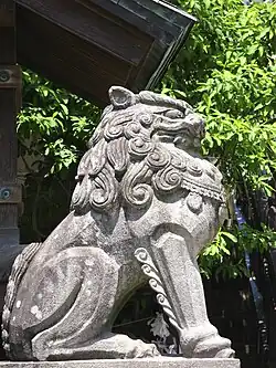 Another unique feature of Suwa Shrine are the "stop lions". They are two stone-carved guardian lions, and tradition holds that if one wishes to stop a behavior, such as smoking, one should tie a piece of paper or string around their front legs and pray for their assistance.