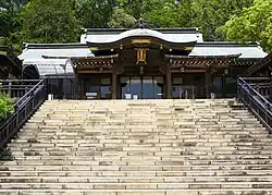 Suwa Shrine (諏訪神社, suwa jinja) is the major Shinto shrine of Nagasaki, Japan, and one of the major locations of the Nagasaki Kunchi, originally celebrated on the ninth day of the ninth lunar month and now celebrated on the fixed dates of October 7 to October 9.[1] It is located in the northern part of the city, on the slopes of Mount Tamazono, and features a 277-step stone staircase leading up the mountain to the various buildings that comprise the shrine.
