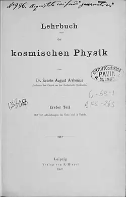 - ^ Arrhenius, S., Worlds in the Making: The Evolution of the Universe. New York, Harper & Row, 1908,