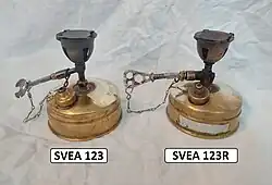 Svea stoves were first made by C.R. Nybergs Lödlampfabrik, which also manufactured blowtorches as well as other machinery and equipment. Founded by Carl Nyberg, the firm later became one of the largest industries in Sundbyberg, Sweden. In 1922, the business was taken over by Max Sievert, an early associate of Nyberg's, and renamed Sieverts Lödlampfabrik (later known as Sievert AB). The Svea 123, introduced in 1955, is considered to be the first compact backpacking white gas stove[1] and one of the most popular camping stoves ever made.[2] Its distinctive "roaring" sound has been likened to that of a jet engine at takeoff.[3] In 1969, the Svea brand was acquired by Optimus,[4] another Swedish manufacturer of portable stoves, which has continued production of the Svea 123 to the present day. Because of its simple design[5] and reputation for dependable performance,[6] even under extreme conditions,[7] the Svea 123 enjoys a devoted following.
