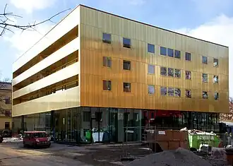 The award-winning[1] Swedish builder Sven-Harry Karlsson (b. 1931) has been an art collector since the mid-1960s, forming a collection including work by Carl Fredrik Hill, Helene Schjerfbeck, Ernst Josephson, August Strindberg, Edvard Munch, Anders Zorn, and others. He constructed a building to house his collection in Vasaparken in Stockholm's inner city.[2] Designed by Gert Wingårdh and Anna Höglund of Wingårdh Architects, the 5-story building is clad in a gold-tinted copper-aluminium-zinc alloy designed not to darken when exposed to oxygen.[3] It opened in 2011 and is now owned and run by a foundation.[2] Its director since 2018 has been Dragana Kusoffsky Maksimović.[2]