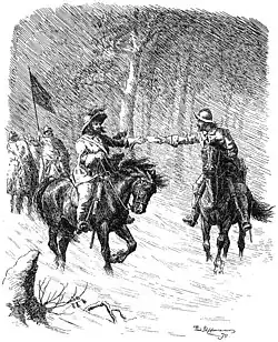 ![]() Svend Poulsen Gønge (right), luring the Swedish colonel Sparre into an ambush while disguised as a Swede | |