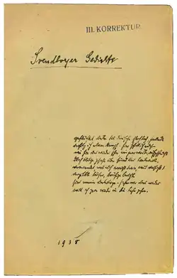 There are only two copies of the so-called "Prague sequence" known, one of which is in the Brecht Archive, Berlin; the other copy was discovered in 2011 by the Rotes Antiquariat, Berlin, in New York.[7]