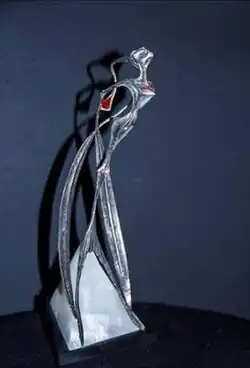 Swallow Music Awards (Armenian: Ծիծեռնակ երաժշտական մրցանակաբաշխություն, Tsitsernak yerazhshtakan mrcanakabashkhutiun) is an annual national music awards ceremony first held in Yerevan, Armenia, on 25 March 2017.[1] The awards are created and sponsored by RA Ministry of Culture to appreciate and spur the activities of individuals and creators of various genres of Armenian musical art, as well as to display the significant achievements in the field of music to the broader layers of society. The awards consist of four parts: achievements in classical genre, folk genre, mass pop genre, and special/other awards.[2] During the ceremony artists are given the awards designed by Armenian painter and designer Arman Nur.[1] Each year, the award ceremony airs live on Public Television company of Armenia.