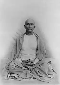 Turiyananda was born as Harinath Chattopadhyay, the youngest of six children, in an affluent Bengali middle-class family in Calcutta on 3 January 1863. His father, Chandranath Chattopadhay, an orthodox Brahmin who lived in the Bagbazar area of Calcutta, was well respected by the people. Harinath lost his parents at a very young age and was brought up by his eldest brother, Mahendranath. His mother Prasannamayi died while trying to save young Harinath from a wild jackal when he was three years old.[1] His father died when he was just twelve years old. In school, Hari paid close attention to all his studies, but his special interest lay in religion and athletics. His ambition was to lead an austere life, observing all the orthodox rules and traditions. After finishing his studies in the Bengali Institution, Hari went to the General Assembly School (now Scottish Church Collegiate School), run by Christian missionaries. However, he was never swayed away by the doctrines of Christianity taught by the missionaries. At a very young age he was inclined towards the study of philosophy and scriptures like the Bhagavad Gita, Upanishads and works of Adi Shankaracharya. He was attracted towards the teachings of Advaita Vedanta, and strove sincerely to live up to that ideal[2]: 251 One notable incident that depicted his adherence to the principles of Vedanta was his fearlessness upon a chance encounter with a crocodile. One day while taking a bath in the Ganges, he saw the creature approaching him. Despite warnings from passersby, he did not turn back, and instead, faced the crocodile. He was adhering to the principle of Vedanta that says the same divinity is manifest in all living organisms, and therefore one soul should not be afraid of another.[3]