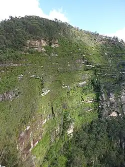 The Blue Mountains on average typically receives greater than 1,000 millimetres (39 in) of rainfall per year;[8] the low subsurface permeability, combined with the slowed runoff, assists in the formation of these biodiverse swamp communities in Blue Mountains.[9]