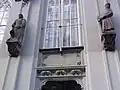 In 1962 four limestone statues were placed in the façade. These are by Marius van Beek. From left to right they represent: William the Silent (first brother of the House of Orange), Gerardus van Uden (founder of the confraternity), Gijsbertus van Poorten (Who gave the first house) and Floris van Egmont (important Swan Brother).[5] In 1965 the Swan Brothers' House became a national monument.