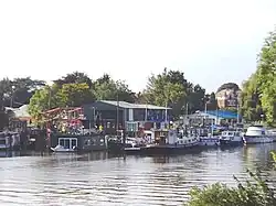 The island has a commercial boatyard in addition to residential mooring for boats. It is connected to the Twickenham bank by a small bridge, which is suitable for vehicles as well as foot traffic.